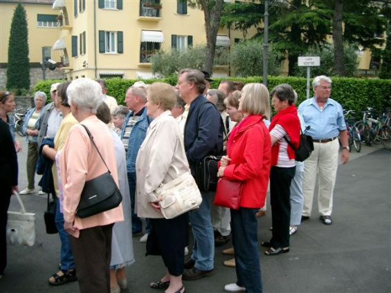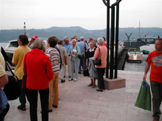 Heute ging es mit dem Bus rund 150 Kilometer um den Gardasee. Im Norden liegt der See schmal zwischen den Bergen. Im Süden erreicht er an seiner breitesten Stelle eine Ausdehnung von 17 Kilometern. Der See ist 386m tief und ca. 52 km lang. Heute stand uns den ganzen Tag über eine sehr kompetente Reiseleiterin (Andrea aus Riva) zur Verfügung (ihre Herkunft konnte sie durch den Münchner Dialekt nicht verheimlichen). An einem Fußgänger Überweg erzählte sie uns einen Witz, dem zufolge gibt es in Italien nur 2 Arten von Fußgängern 1. die Schnellen 2. die Toten. Den ersten Aufenthalt gab es auf der Halbinsel Sirmione mit römischen Ruinen. Mit dem Schiff setzten wir nach Salo über, dem westlichsten Zipfel des Sees. Der Dom war leider geschlossen.