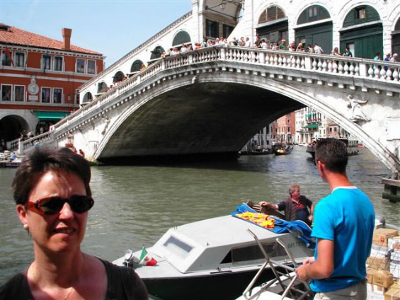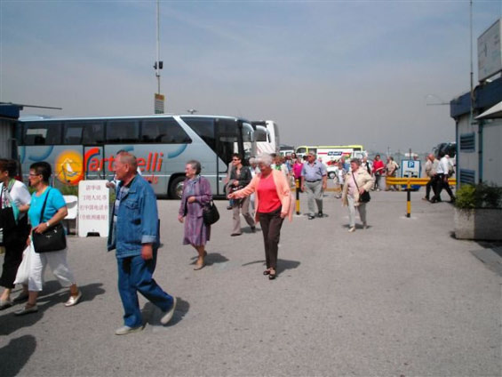 Aus organisatorischen Gründen wurden die Tagesfahrten Venedig und Gardaseerundfahrt getauscht. So brachte uns der Bus heute zunächst an die Schiffsanlegestelle von Venedig. Am Markusplatz angekommen mussten wir feststellen, daß drei Teilnehmer fehlten. Die freie Zeit bis 13Uhr konnte jeder für sich gestalten. Pünktlich zum Führungsbeginn durch einen Reiseführer waren auch die drei Nachzügler wieder dabei. Venedig wurde in seiner 2000 - jährigen Geschichte nur ein einziges mal erobert und zwar von Napoleon. Die ersten Siedler in der Lagune waren süditalienische Flüchtlinge. Sie gründeten auf den Inseln rund 160 Dörfer. Jedes Dorf hatte eine eigene Kirche. Im Laufe der Jahrhunderte wuchsen die Dörfer zu Venedig zusammen. Deshalb hat die Stadt heute noch etwa 110 Kirchen. Zwischen den Inseln wurden die Wasserstraßen belassen und jede Brücke führt praktisch auf eine andere Insel.