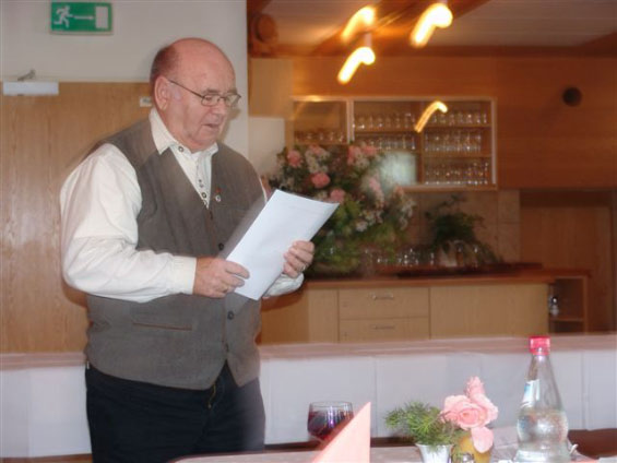Für einige Sätze meldete sich der Schreiber dieser Zeilen zu Wort. Wenn ich jetzt auf meine Notizzettel schaue wird mir erst richtig bewußt, daß wir recht viel gesehen, gut gegessen und viel erlebt haben. Aber die Vorarbeit von Vorstand Urnauer und Kassier Schnersch war sehr wichtig, obwohl beide nicht an der Reise teilnehmen konnten. Die Feinplanung und die Begleitung über die 4 Reisetage hatte unser 2.Vorsitzender Heinz Kaldi übernommen und sehr souverän durchgeführt. Dafür möchte ich dir lieber Heinz auch im Namen der ganzen Reisegesellschaft ein herzliches Dankeschön aussprechen. Vor allem wünschen wir dir auch eine sich weiter stabilisierende Gesundheit. Die Reise konnte nur so gut gelingen, weil alle zusammen geholfen haben z.B. die frischen Brezeln und die Hausapotheke von Schall Sepp. Nicht zuletzt durch unseren Busfahrer Karl Fischer und seine sichere, Spiegel schonende Fahrweise und seinen guten Kaffee.