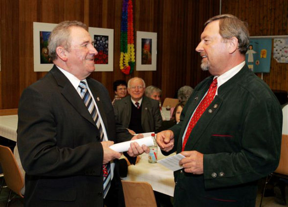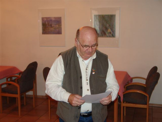 Der anwesende Kreisvorsitzende RichardHarle richtete dann ein Grußwort an die Mitglieder. Er überbrachte den Dank des Bundesvorsitzenden Supritz für die aktive und vorbildliche Arbeit des Backnanger Ortsverbandes. Er appellierte auch, daran zu arbeiten, dass das Schicksal der Donauschwaben nicht in Vergessenheit gerate. Denn ein altes Sprichwort besage: "Wer schreibt, der bleibt." Und wenn dies mit modernen Kommunikations- und Vervielfältigungsmöglichkeiten geschehe könne auch die jüngere Generation mehr damit anfangen. Es gelte Traditionen zu bewahren und gleichzeitig die Zukunft modern zu gestalten. Was in Bayern "Laptop und Lederhose" heiße müsse für die Zukunft der Donauschwaben "Bratwürste und Computer" bedeuten.