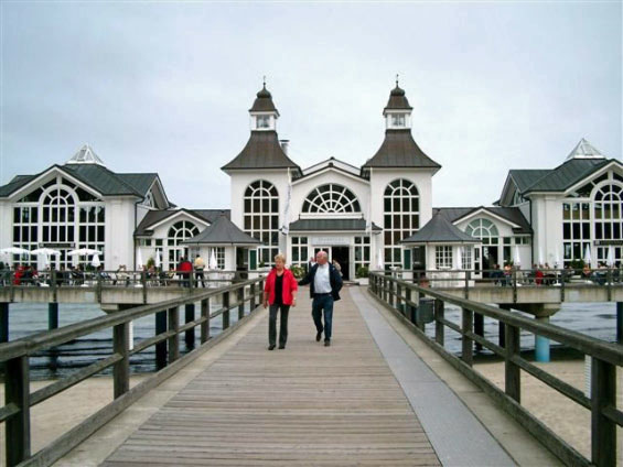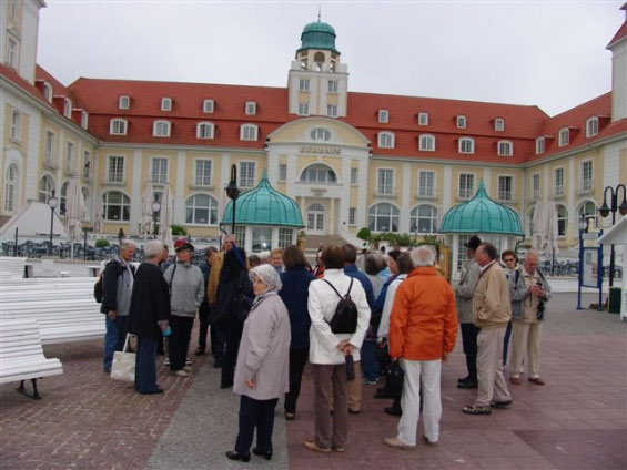 Am Dienstag waren der Südteil – die Badeorte Binz, Sellin und Putbus – unser Ziel. Wir fuhren quer über die Insel durch die schönsten Alleenstraßen, durch die Kreisstadt Bergen, betrachteten den schönen Marktplatz mit der Marienkirche, kamen an der über 4,5 km langen Prora „KdF – Kraft durch Freude“, dem „Koloss von Rügen“ aus der Nazizeit vorbei. Im Badeort Binz zog uns die Bäderarchitektur mit dem im Jugendstil errichteten Kurhaus, den herrlich restaurierten und unterschiedlichsten Villen in den Bann – die längste und schönste Seepromenade. In Sellin bewunderten wir die wiederhergestellte Seebrücke „Schiefer August“ und das nach historischem Vorbild neu gebaute Kurhaus. Mit dem „Rasenden Roland“ einer Schmalspurdampfeisenbahn fuhren wir ca. 13 km von Binz nach Putbus, mitten durch blühende Wiesen und Felder. Margariten, Klatschmohn, Kornblumen, Kamille und viele andere Blumen blühten um die Wette. Vom Mittelpunkt der ehemaligen Fürstenresidenz Putbus mit seinen weißen Häusern rund um den „Cirkus“ und den Rosenbäumchen in allen Farben davor spazierten wir durch eine 200 Jahre alte Lindenallee in einen Landschaftspark, der eine Größe von 45 ha hat. Der Bus brachte uns wieder rechtzeitig zum Abendessen ins Hotel zurück.