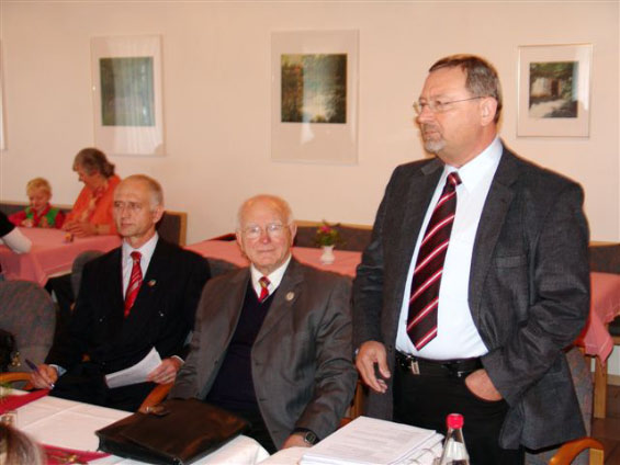 „Die meisten von Ihnen kennen mich ja bereits. Meine Frau und ich haben drei Kinder, die auch aktiv bei den Donauschwaben mitmachen. Im Oktober bin ich frisch 50 Jahre geworden und trotzdem das jüngste Vorstandsmitglied. Das muss nicht so bleiben. Wir brauchen aus der jungen Bekenntnisgeneration Leute, die gerne donauschwäbische Traditionen auch mit modernen Medien, wie unserer Hompage, weiterpflegen wollen. Außerdem ist die Familienforschung mit neuen Computerprogrammen ein sehr spannendes Betätigungsfeld. Einerseits haben wir steigende Mitgliederzahlen zu verzeichnen, andererseits ist die Leserschar z. B. der Mitteilungen sehr gering. Nach dem tiefsten Stand im Jahre 2004 mit ca. 40 Mitgliedern haben wir heute fast wieder 70 Mitglieder (wie vor 30 Jahren). Das ist sehr schade, denn in der donauschwäbischen Presse erscheinen regelmäßig Berichte über unsere Aktivitäten in Backnang. Außerdem werden die Geburtstage unserer Mitglieder veröffentlicht.“