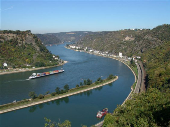 Bei herrlichem Sonnenschein brachte uns das Schiff durch das schöne Rheintal inmitten von Reben und sich schon bunt färbenden Wäldern mit rechts und links auf den Anhöhen liegenden Burgen und Ruinen, vorbei an Niederheimbach (der Urheimat der Auswandererfamilie Weißbarth), Bacharach, Oberwesel, dem Loreleyfelsen nach St. Goarshausen. Dort erwartete uns wieder der Bus, um uns auf die Aussichtsplattform des Loreleyfelsens zu bringen. Eine herrliche Rundumsicht belohnte uns.
