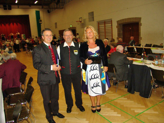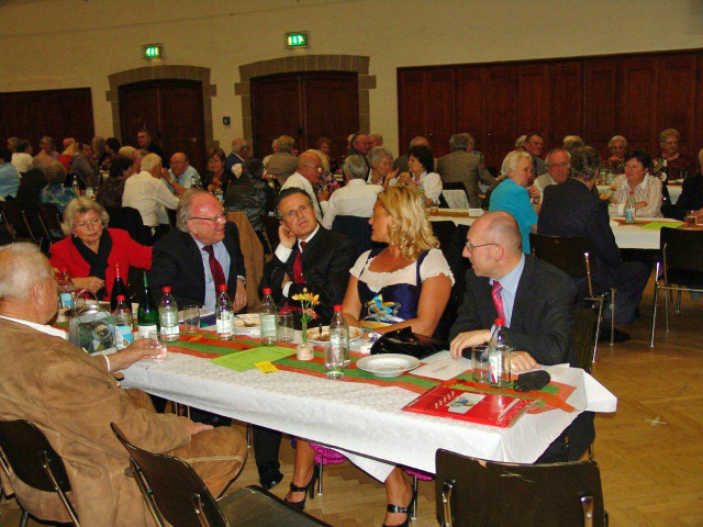 Der erste Vorsitzende, Heinz Kaldi, konnte wieder zahlreiche Gäste aus nah und fern in der herbstlich schön dekorierten Stadthalle begrüßen. Neben Oberbürgermeister Dr. Nopper und seiner Gattin waren auch sehr viele Ehrengäste, u. a. Bürgermeister Schmitt und die Kreis- und Stadträtinnen und -räte Herr Dr. Schwarze, Frau Hefter-Hövelborn und Herr Bauer, der Bezirksvorsitzende Lorenz Baron und der Kreisvorsitzende Richard, der Einladung gefolgt. Außerdem beglückwünschte er zwei Geburtstagsjubilare und ein Ehepaar, das ein Ehejubiläum hatte, und die trotzdem hier zur Arbeit angetreten sind. Er bedankte sich bei den vielen Helferinnen und Helfern und lobte seine Mannschaft.