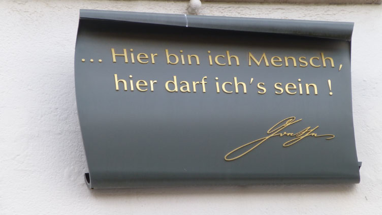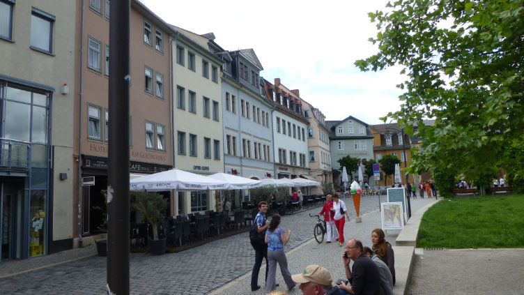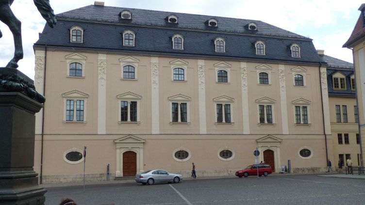 Am Sonntag ging die Reise nach Weimar. Zu Fuß führte uns der Reiseführer durch die beschauliche Stadt vorbei an der Bauhaus-Universität, der Herzog Anna Amalia Bibliothek, dem Stadtschloss, dem Deutschen Nationalmuseum und den Wohnhäusern von Goethe und Schiller. Neben den großen Dichtern Goethe, Schiller, Wieland und Herder sind als kulturelles Erbe auch das Bauhaus und 1919 die Gründung der Weimarer Republik zu nennen.
