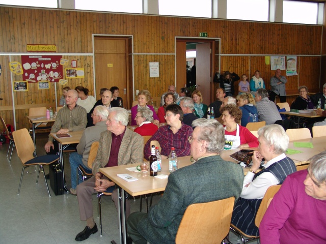 Der erste Vorsitzende, Heinz Kaldi, begrüßte die Gäste, die sich trotz des schlechten Wetters eingefunden hatten. Ganz besondere Willkommensgrüße richtete er an den Vertreter des Oberbürgermeisters der Stadt Backnang, Herrn Alfred Bauer, Herrn Dr. Ketterer von der CDU-Fraktion, Stadträtin Charlotte Klinghoffer und den Hausherrn, Herrn Pfarrer Pfarrer Kloos. Auch den Vorsitzenden des Kreisverbandes der Donauschwaben, Herrn Richard Harle mit seiner Gattin, konnte er begrüßen. Wieder hatte er eine Überraschung in seinem Gepäck.