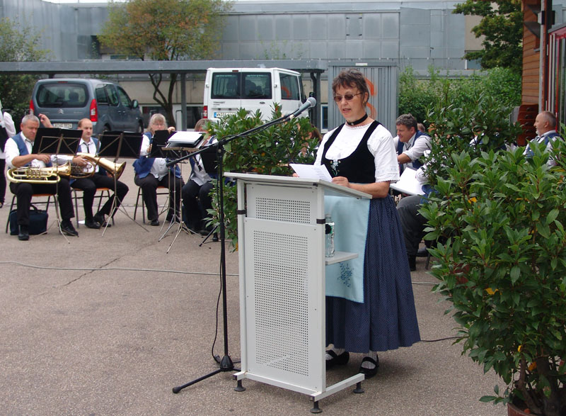 Musikalisch umrahmt wurde die Feierstunde u. a. mit einer Mazurka von der Ungarndeutschen Heimatblaskapelle Backnang unter der Leitung von Herrn Gregor Steer. In Tracht trug Frau Beate Weißbarth stimmungsvoll das Gedicht „Unverlierbare Heimat“ des donauschwäbischen Dichters Jakob Wolf vor. Die Tanz- und Trachtengruppe Backnang rundete mit zwei flotten Tänzen die Erinnerung an die alte Heimat ab.