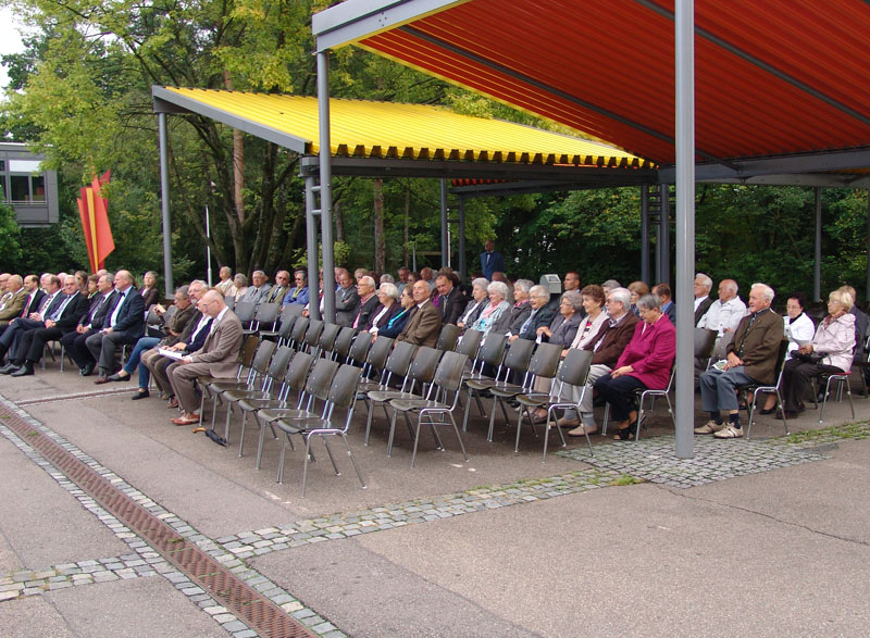 Der erste Vorsitzende des Ortsverbandes Backnang der Landsmannschaft der Donauschwaben, Heinz Kaldi, begrüßte die anwesenden Gäste, insbesondere den Ersten Bürgermeister der Stadt Backnang, Herrn Michael Balzer, den Festredner, Herrn Innenminister a. D. Heribert Rech, MdL und zugleich Vorsitzender des Vereins „Haus der Donauschwaben in Sindelfingen“, die Landtagsabgeordneten Wilfried Klenk und Gernot Gruber sowie Mitglieder des Gemeinderats und Kreistags aus Backnang. Ebenso hieß er Dekan Wilfried Braun und den Vertreter der Vertriebenenverbände und Landsmannschaften, Herrn Klaus Loderer herzlich willkommen.