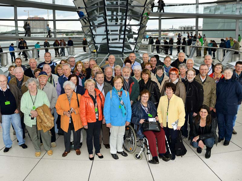 Das Programm der Berlinreise beinhaltete die Besichtigung des Plenarsaals des deutschen Bundestags im Reichstagsgebäude. Hier informierte der Besucherdienst des deutschen Bundestags in einem beeindruckenden Vortrag über Historie, Aufgaben und Arbeit des Parlaments. Im Anschluss konnte die Glaskuppel des Architekten Sir Norman Foster besichtigt werden. Sie diente zum Abschluss des Höhepunkts unserer Bildungsreise als Kulisse für das Gruppenfoto.