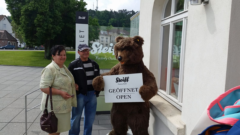 Der diesjährige Tagesausflug führte die Backnanger Donauschwaben zuerst ins Margarethe Steiff Museum nach Giengen an der Brenz. Dort begleiteten uns "Knopf und Frieda" durch animierte bunte Teddy-Erlebniswelten. Vorher konnte man interessante Details aus der 135-jährigen Steiff-Geschichte erfahren. Nach den kreativ animierten Erlebniswelten durften die unterschiedlichsten Tiere aller Größen und Rassen auch mal gestreichelt oder beritten werden. Nach der Safari im Streichelzoo rutschten jung und alt durch eine 15 Meter lange Schlangenrutsche in rasanter Geschwindigkeit hinunter zur Schaufertigung, wo neue Teddybären befüllt und genäht wurden. Daran schloss sich ein Steiff Shop an, in dessen Regalen ein bunter Zoo an Plüschtieren nur darauf wartete befreit zu werden. Lori der Papagei und Knopf der Teddybär konnten überzeugen und begleiteten fortan die Donauschwaben auf ihrer weiteren Reise.