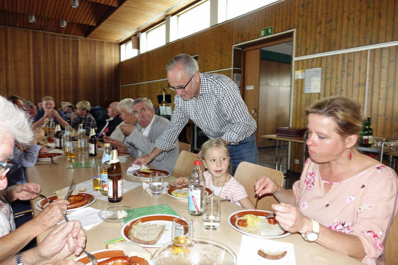 Heinz Kaldi bedankte sich für die Grußworte. Er berichtete, dass 100 kg Fleisch verarbeitet und von einem ehrenamtlichen Helferteam Bratwürste nach donauschwäbischem Rezept hergestellt wurden. Mehr als die Hälfte der Würste waren vorbestellt, der zweite Teil wurde vom eingespielten Küchenteam gebraten und mit selbstgemachtem Kartoffelsalat und Meerrettich serviert. Der ganzen Helferschar wurde für ihren unermüdlichen Einsatz mit einem kräftigen Applaus gedankt. Die Termine für das Jahr 2018 - im Flyer noch als vorbehaltlich bezeichnet - wurden zwischenzeitlich bestätigt und können vorgemerkt werden.
