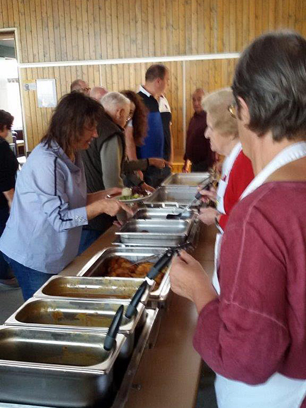 Gulasch-Essen 2018 am Sonntagmittag im Kath. Gemeindezentrum in der Lerchenstraße in Backnang