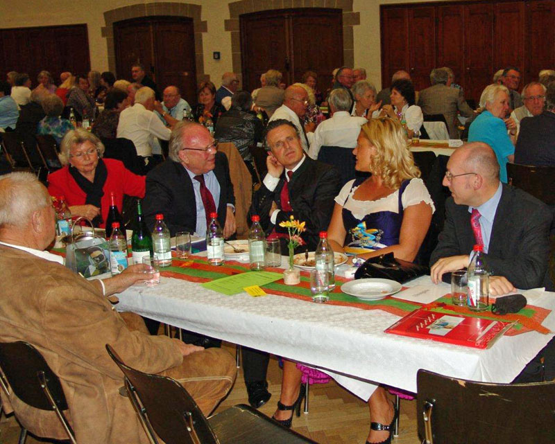 Der erste Vorsitzende, Heinz Kaldi, konnte wieder zahlreiche Gäste aus nah und fern in der herbstlich schön dekorierten Stadthalle begrüßen. Neben Oberbürgermeister Dr. Nopper und seiner Gattin waren auch sehr viele Ehrengäste, u. a. Bürgermeister Schmitt und die Kreis- und Stadträtinnen und -räte Herr Dr. Schwarze, Frau Hefter-Hövelborn und Herr Bauer, der Bezirksvorsitzende Lorenz Baron und der Kreisvorsitzende Richard, der Einladung gefolgt. Außerdem beglückwünschte er zwei Geburtstagsjubilare und ein Ehepaar, das ein Ehejubiläum hatte, und die trotzdem hier zur Arbeit angetreten sind. Er bedankte sich bei den vielen Helferinnen und Helfern und lobte seine Mannschaft.