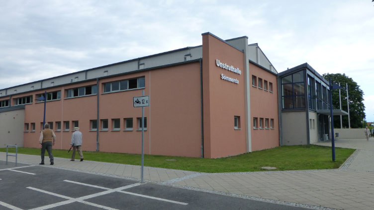 Nach dem Mittagessen im Bärenkeller ging es mit dem Bus zur Unstrut Halle nach Sömmerda. Ein buntes abwechslungsreiches Programm erfreute die zahlreich erschienenen Gäste in der festlich geschmückten Halle. Unter den Klängen des Prinz-Eugen-Marsches zogen alle Trachtenträger ein. Die Tanzgruppe Backnang eröffnete das Programm, Männerchor und Singkreis im Wechsel mit der Donauschwäbischen Tanzgruppe Mosbach und der Ungarndeutschen Tanzgruppe aus Babarc/Ungarn gestalteten den Nachmittag. Die Residenzstadtkapelle Gehren sorgte für die musikalische Unterhaltung.