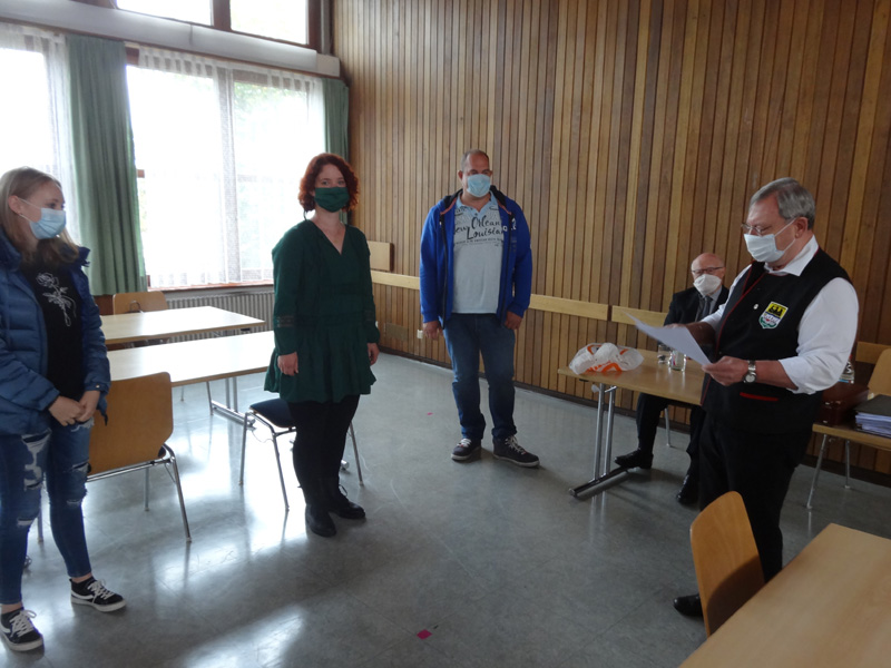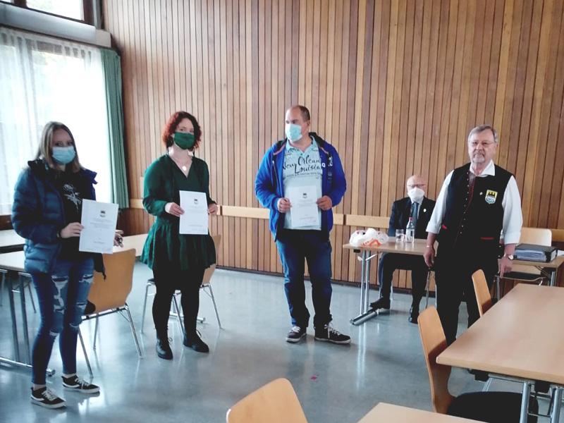 Nach der Begrüßung durch den 1. Vorsitzenden Heinz Kaldi wurden folgende verdiente Mitglieder geehrt: Elfriede Gebhardt mit der Ehrenurkunde des Vereins für ihre über 10-jährige Vereinszugehörigkeit, Ines Biederer, Elisabeth Hoffmann und Alexander Weißbarth mit der silbernen Ehrennadel als Helferinnen und Helfer für 15-jährige Zugehörigkeit. Elfriede Gebhardt war nicht anwesend. Ihr wird die Urkunde zugesandt.